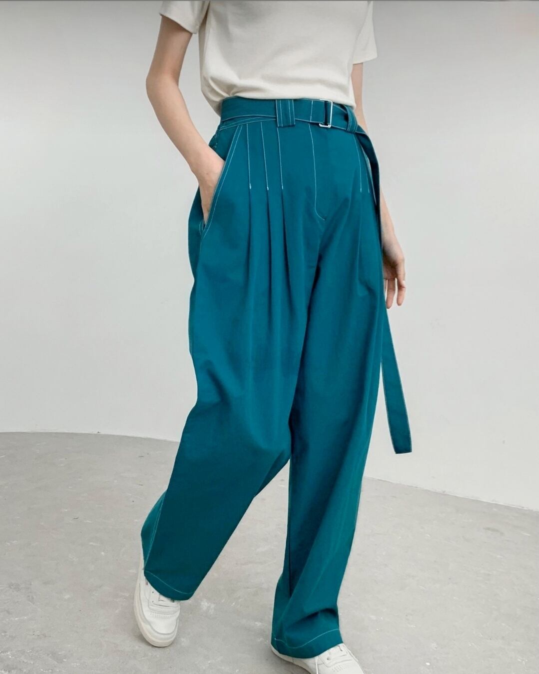 ベルト付きカラーパンツ♪コットン生地で履き心地さ抜群♪ベルトでウエストマークしてメリハリに◎シックなカラーで馴染みやすくシーズンレスで愛用できるアイテムです♪