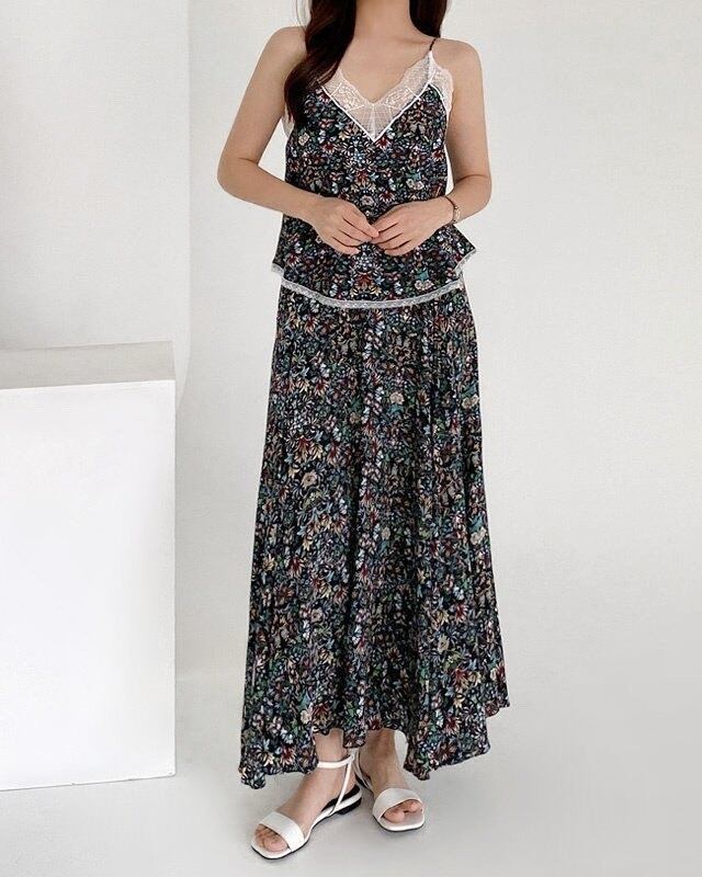 歩くたびにふわっと広がり大人かわいい印象に。ウエストはゴム仕様で、リラックスした穿き心地を叶えます。別売りのキャミとセットアップに◎