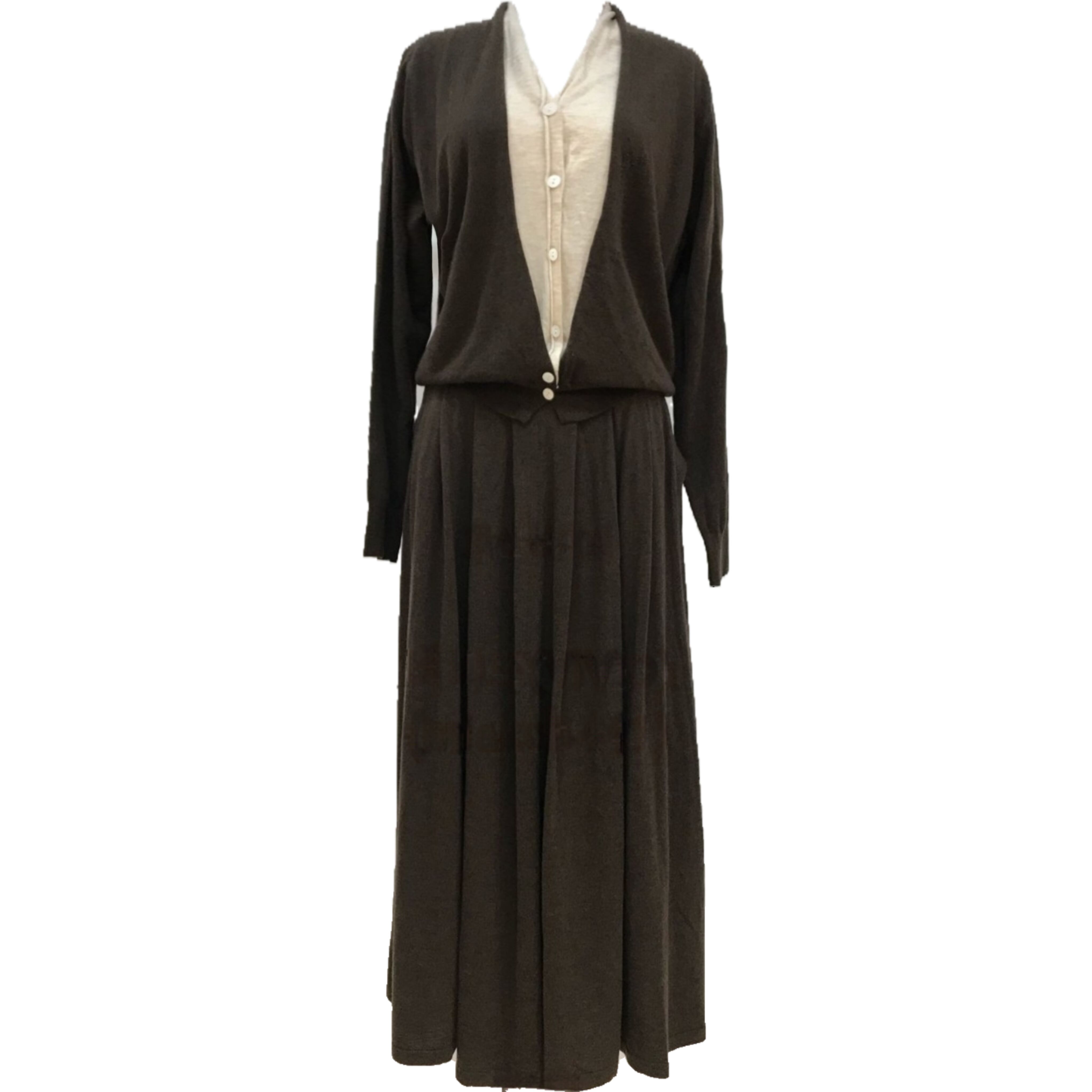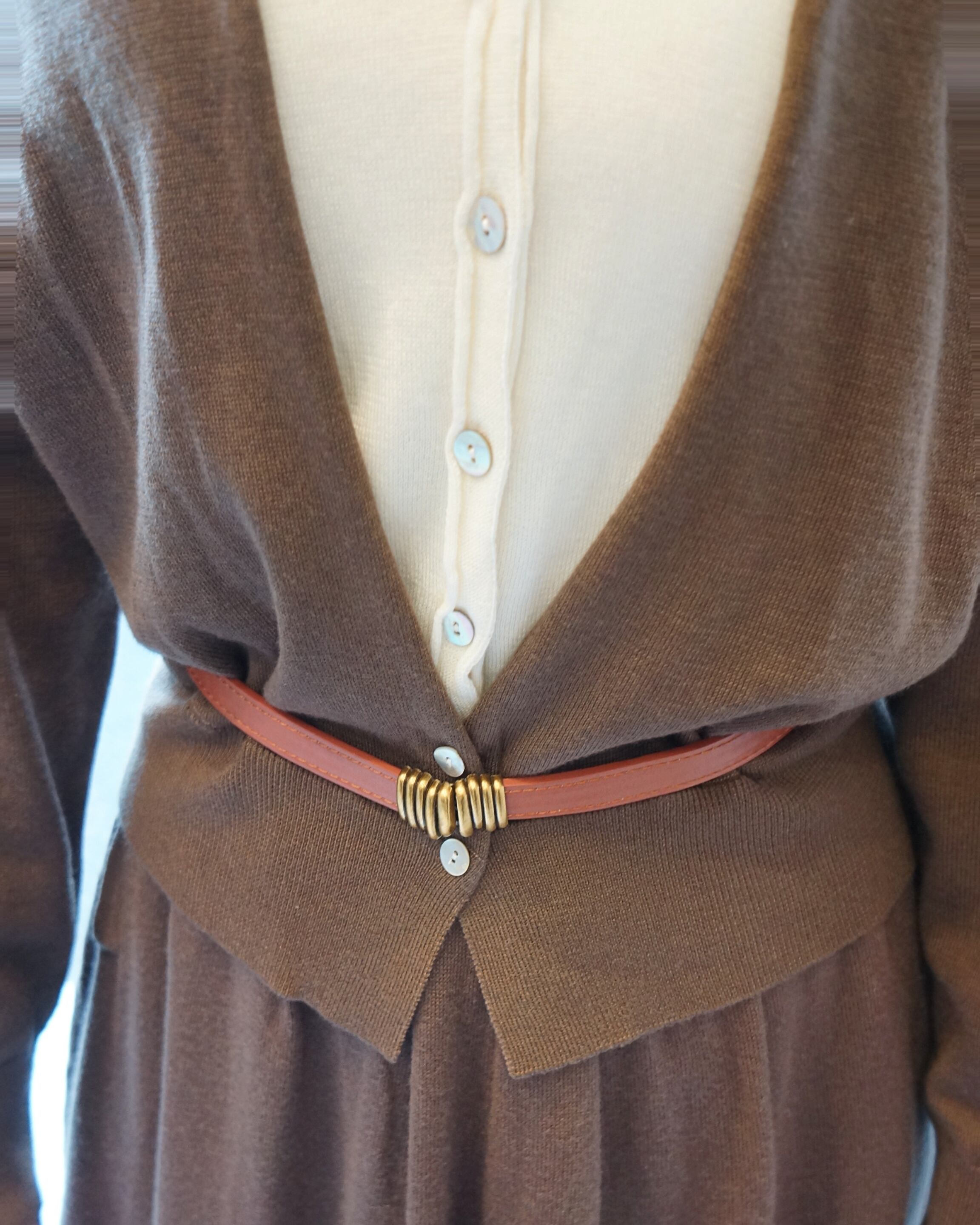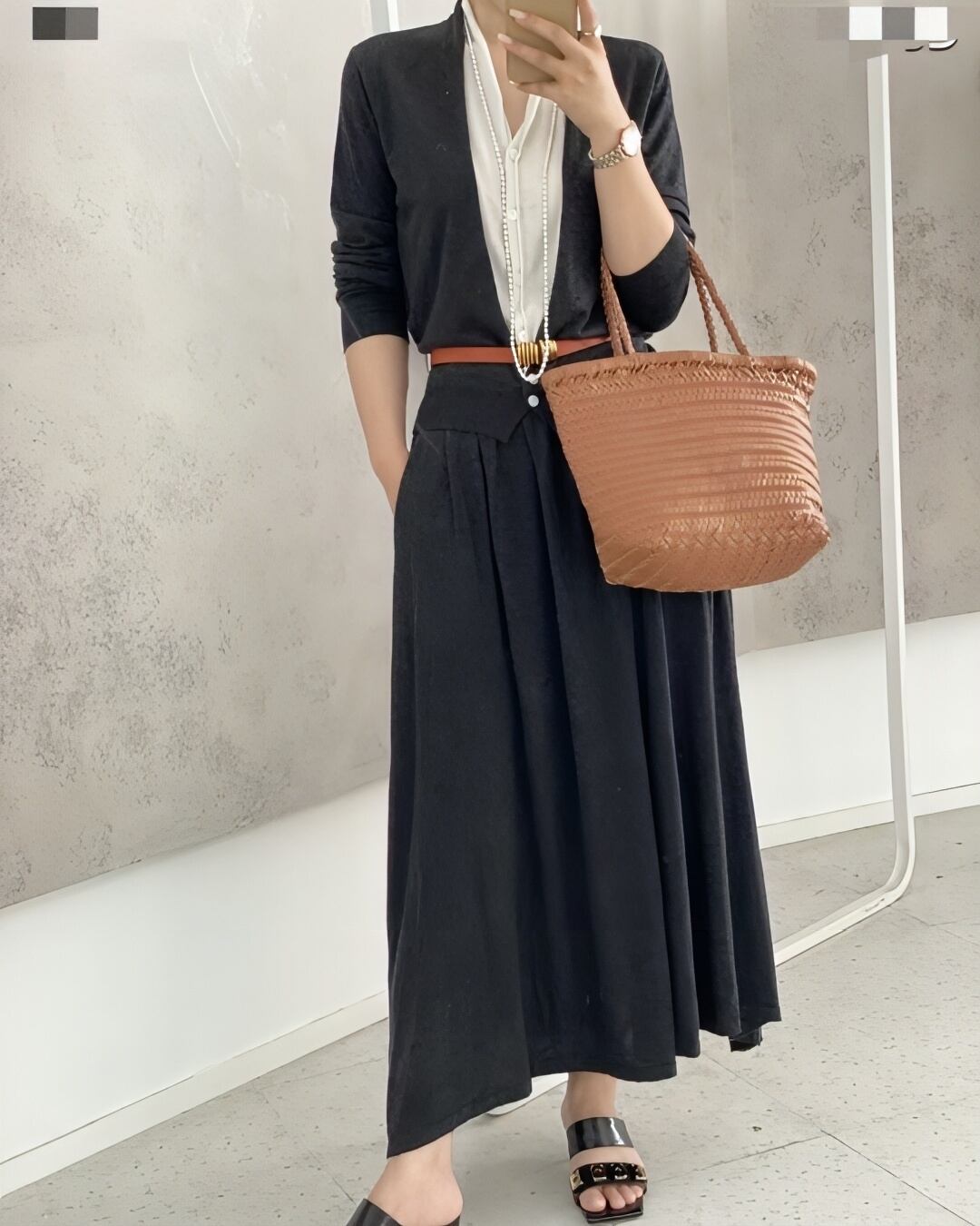 重ね着風Vネックニットカーディガン&スカートのセットアップ♪セットアップでコーディネートに迷わず、セットで着ても別々に着ても簡単に決まる時短アイテム◎