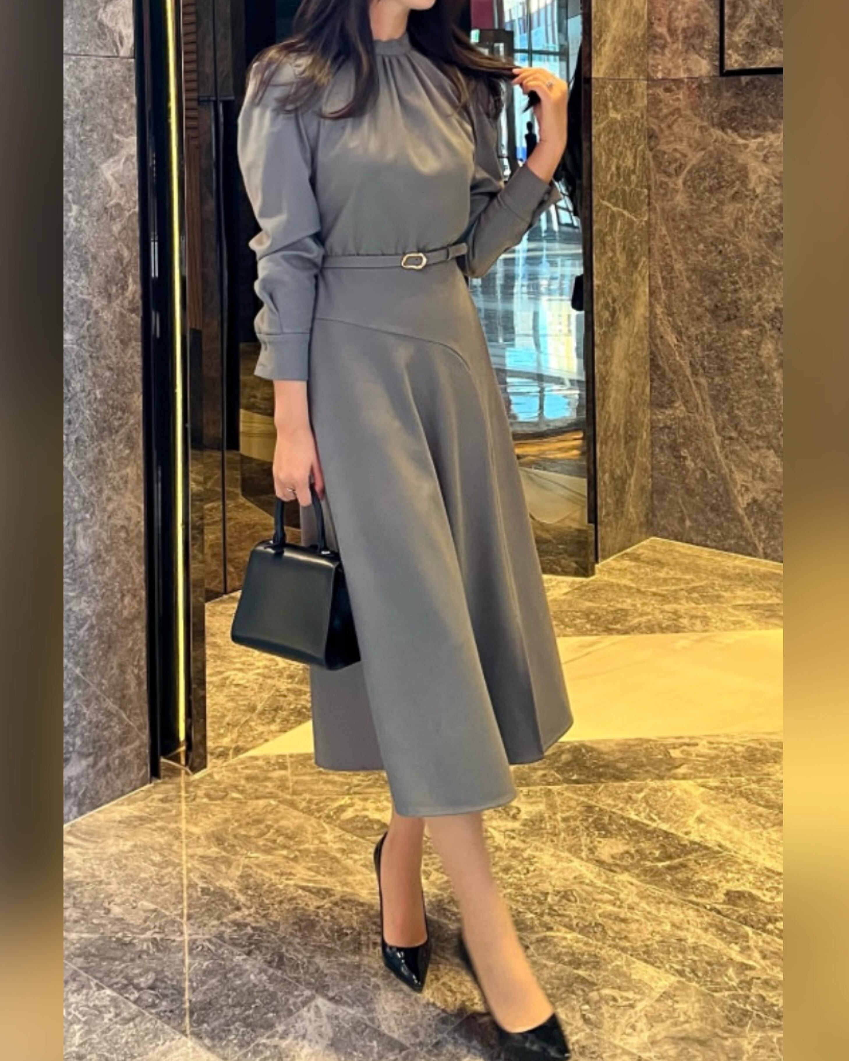 Kファッション韓国 ベルトシャーリングワンピース /RM 1