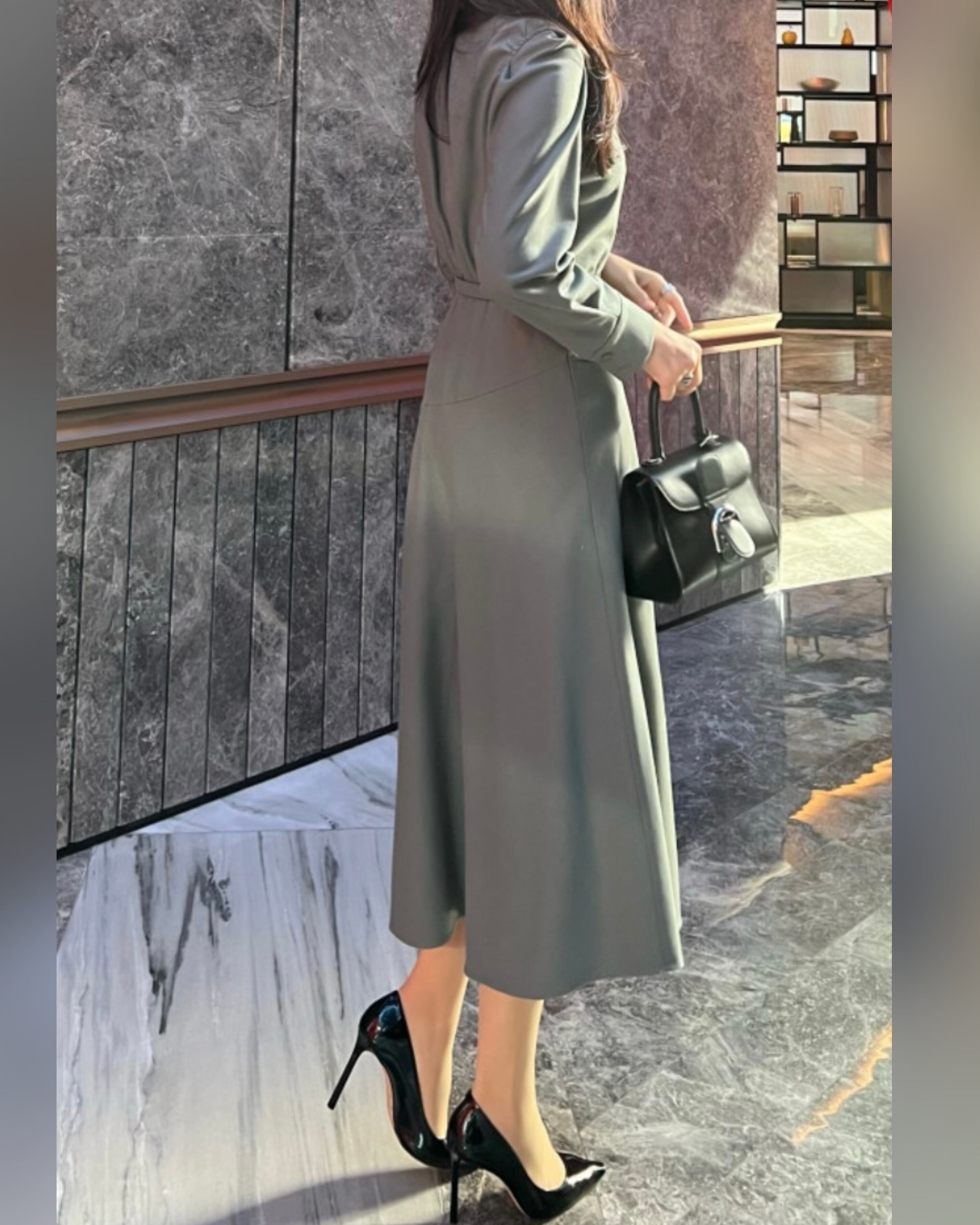 ウエストラインにベルトを加えてラインを強調したスリムなシルエットが演出できる、後ろのウエストラインにバンディングをブロックして快適な着心地をお届けします。春と秋と冬の着用が可能です。