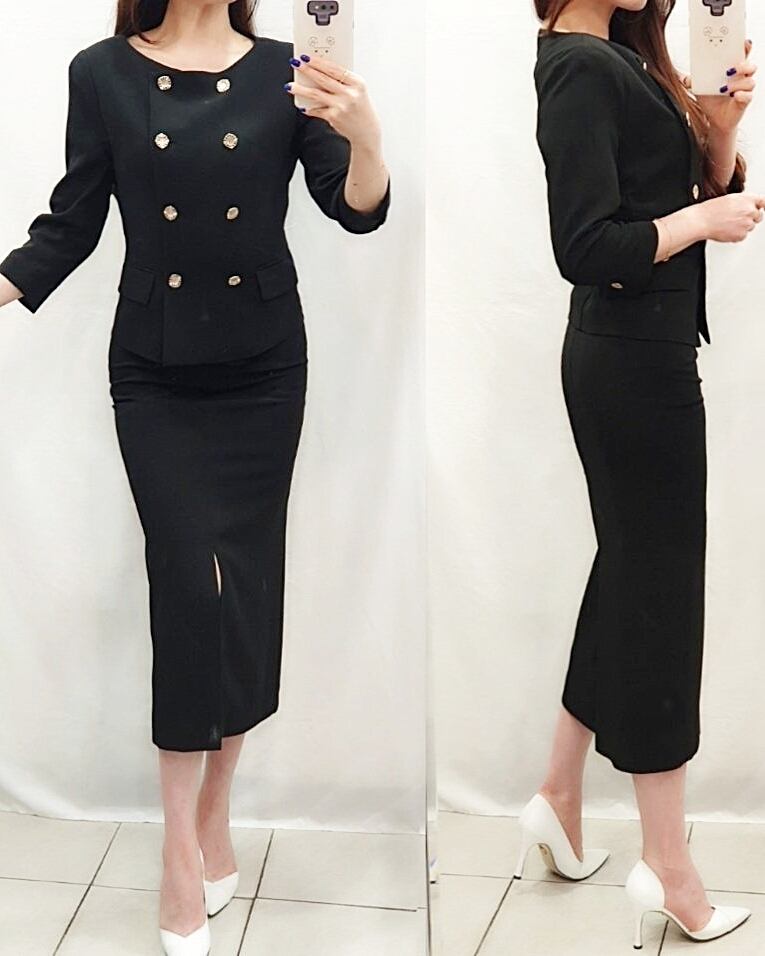 韓国ダブルジャケットhラインスカートセット / ZCA 3**