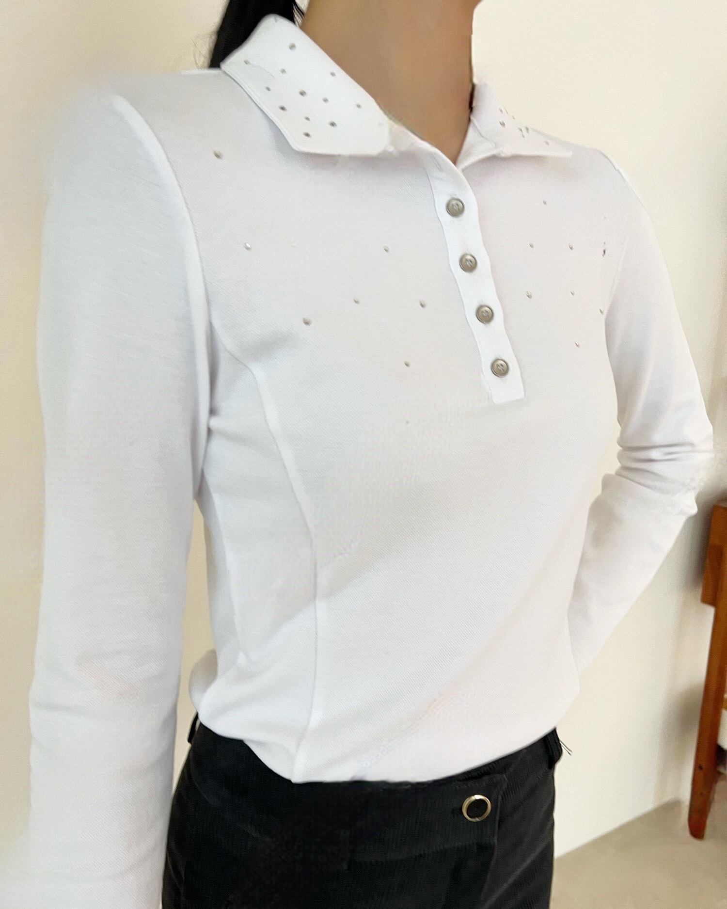 韓国 ゴルフウェア シャイニングラインストーンポロシャツ / SM 1**